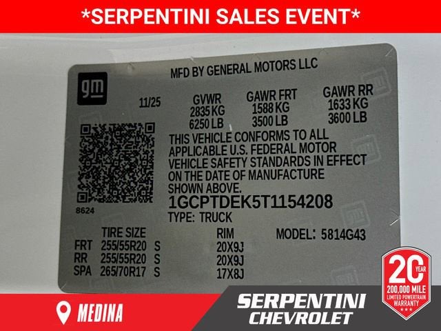 Sale Price available to everyone. *Serpentini sales event includes $2,000 Dealer trade in bonus on qualifying 2018 or newer vehicles with under 80k miles and up to $2,000 down payment match applied as an additional discount. Financing through dealer preferred lenders at standard rates is required and subject to credit approval. Not combinable with other GM, or affiliate programs. Price excludes tax, title, license, and dealer document fees. See dealer for detail***OUT OF STATE RESIDENTS ARE RESPONSIBLE FOR THE PASSING/FAILING OF OTHER STATES INSPECTIONS. WE HAVE NO KNOWLEDGE OF OTHER STATES INSPECTION REQUIREMENTS. **** Compare our warranties to our competitors Ganley, Laria, Medina auto mall, Brunswick auto mart.